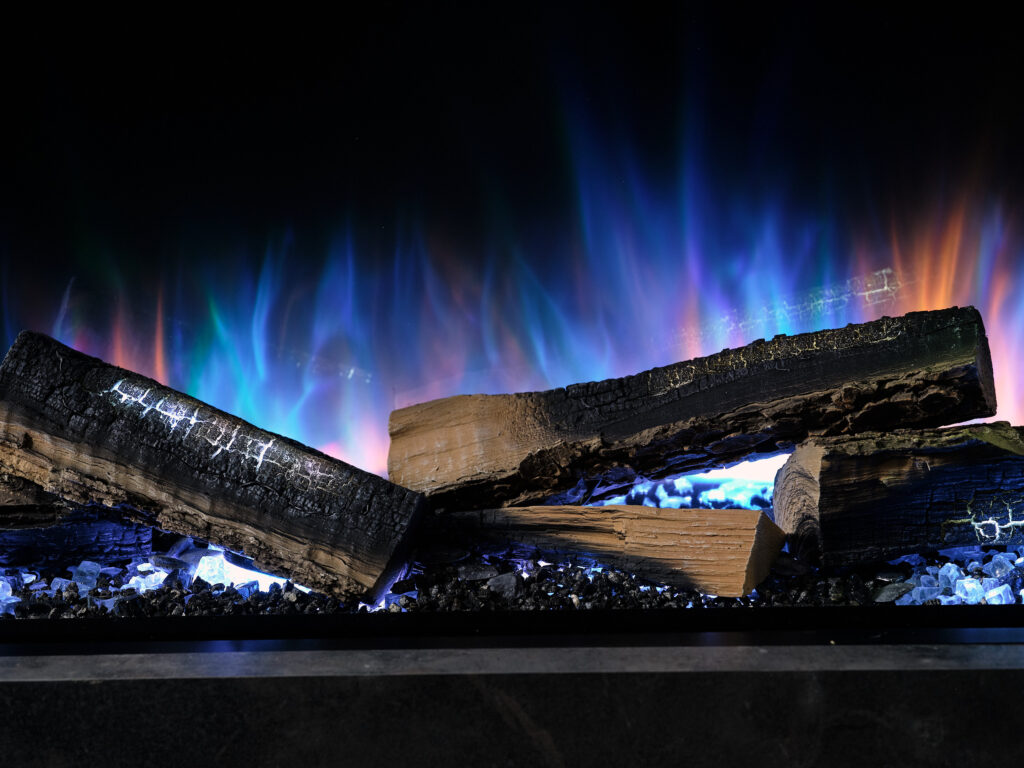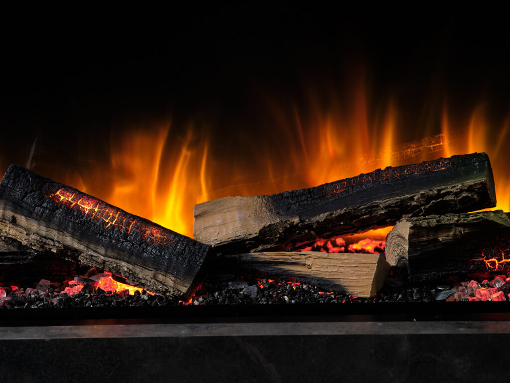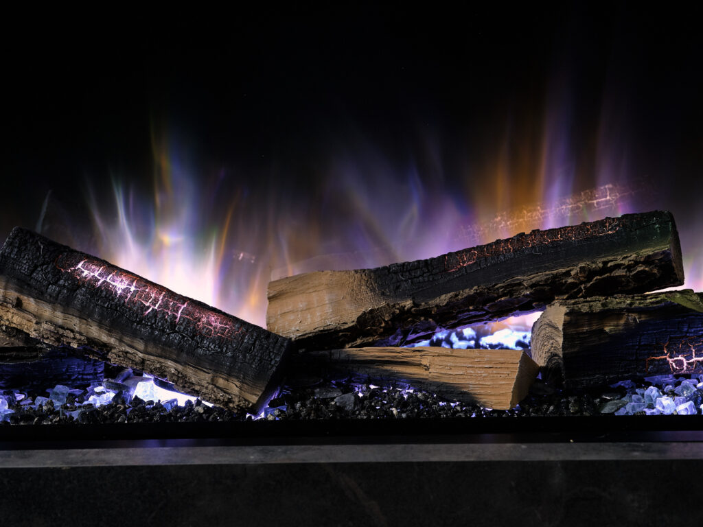 E-FX Lite haarden zijn standaard voorzien van een Premier houtset van echte stammen, bestaande uit één stuk en vast aan het branderbed, direct klaar voor gebruik.