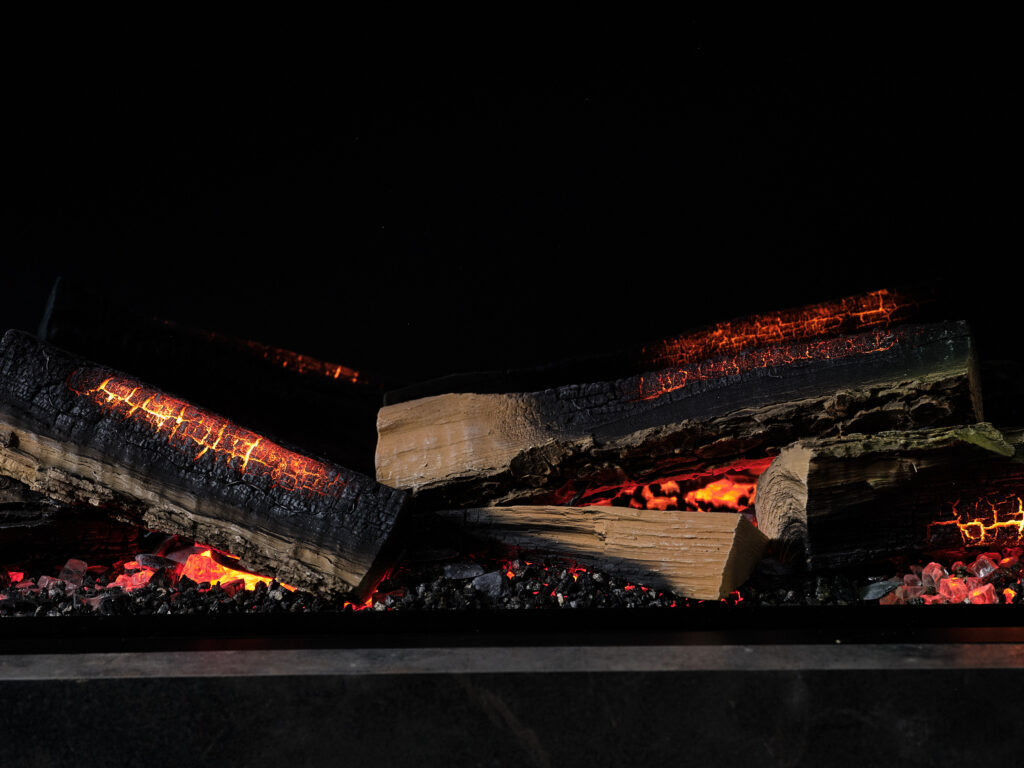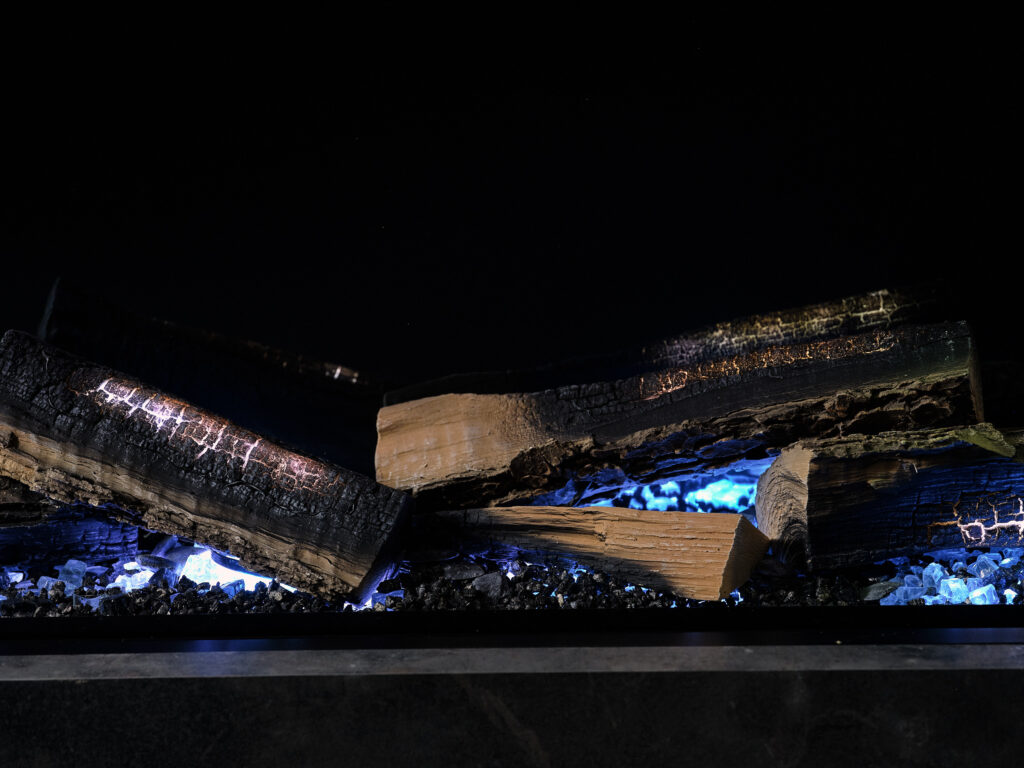 Authentic Hybrid Logs, een mix van echte en keramische houtstammen.